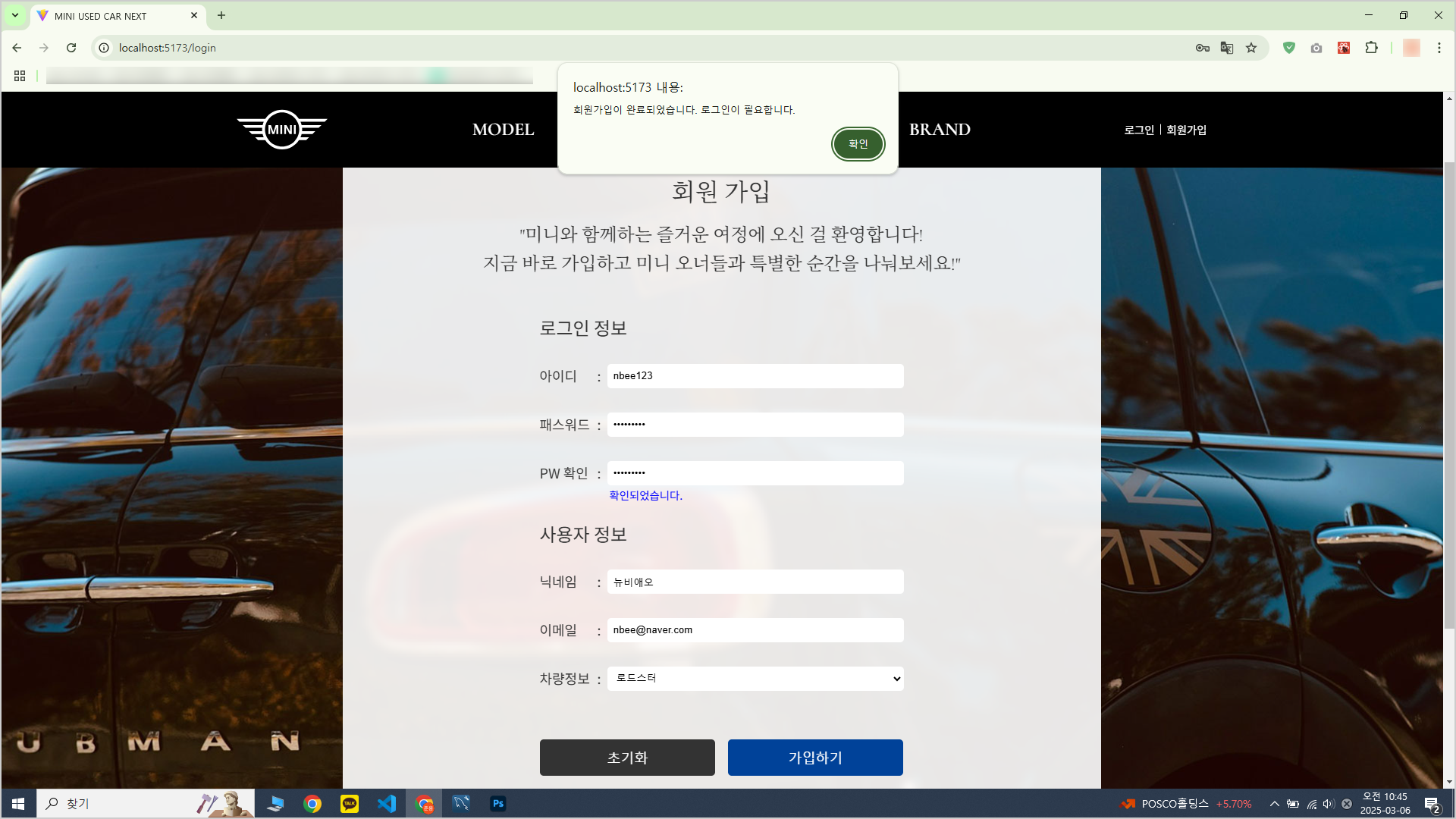 로그인 기능을 구현하면서 DB 연동까지 마친 상태라 회원 가입을 구현하는 것도 금방 끝낼줄 알았다.