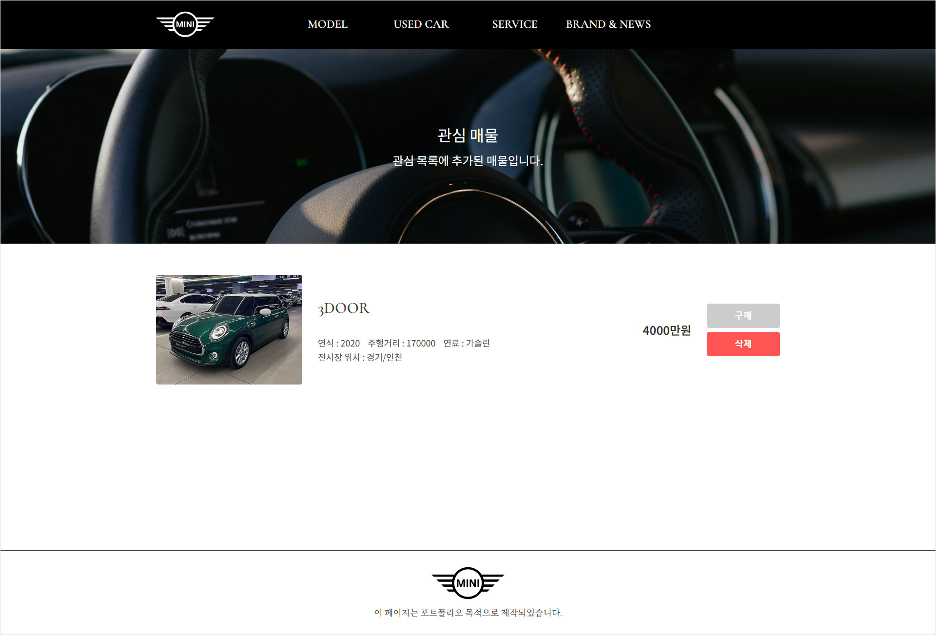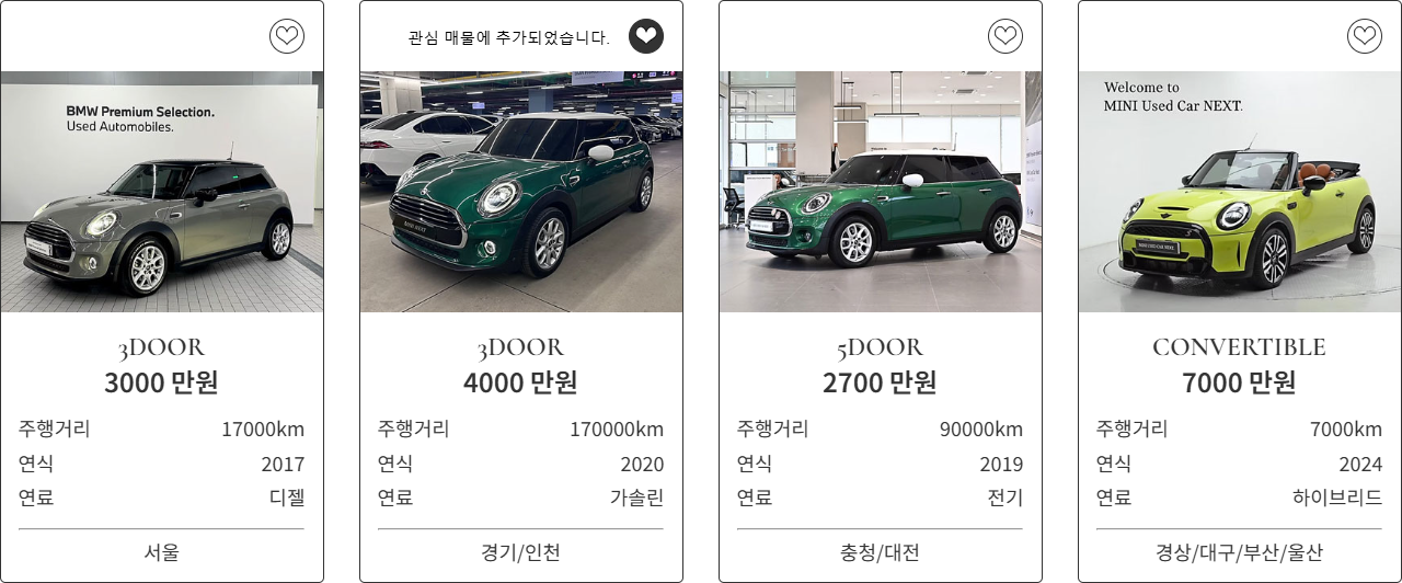 상단에 관심 매물로 표시한 두 개의 매물이 출력되는 것을 확인할 수 있다.